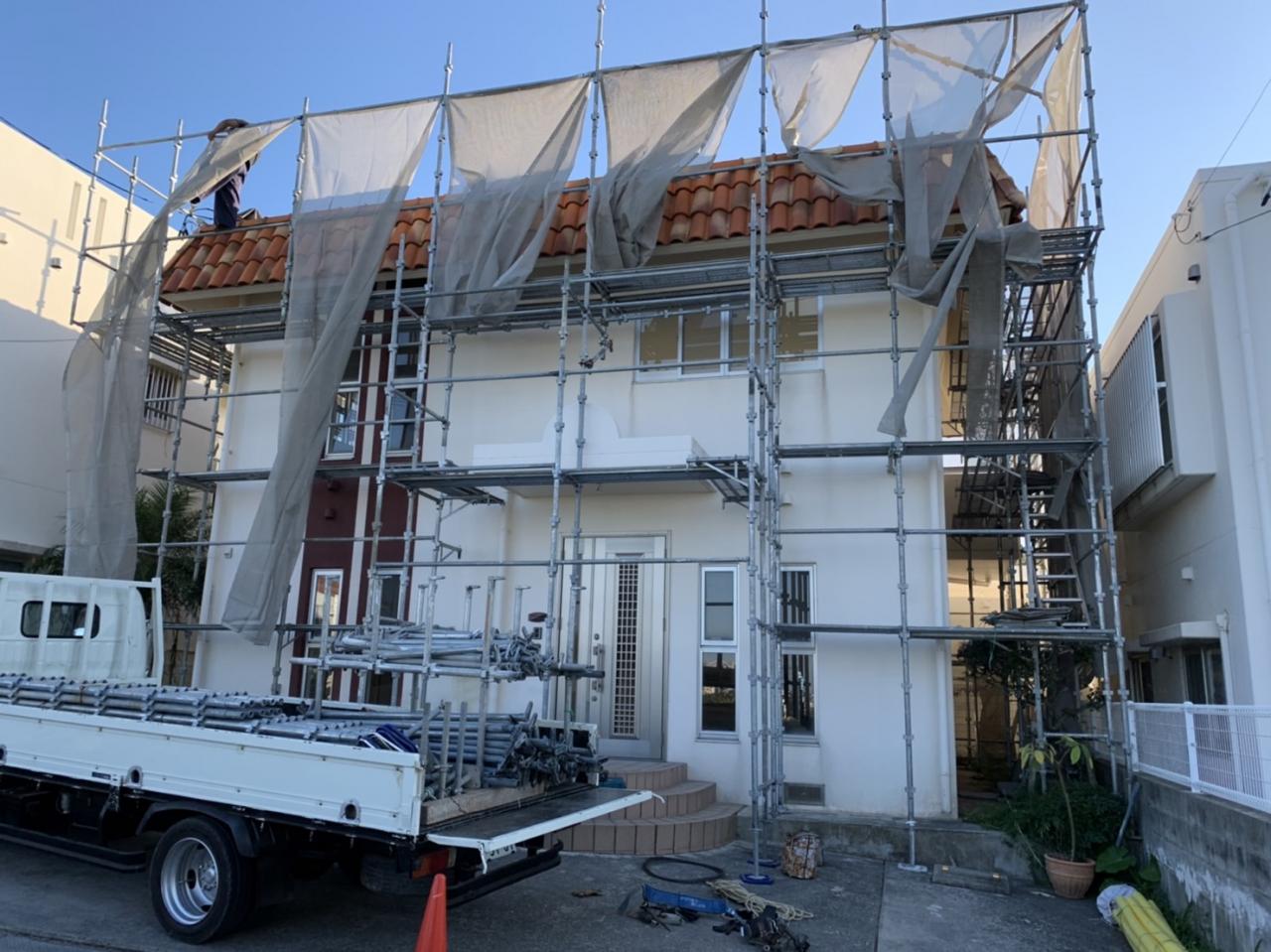 こちらは、浦添市で外壁塗装工事の為