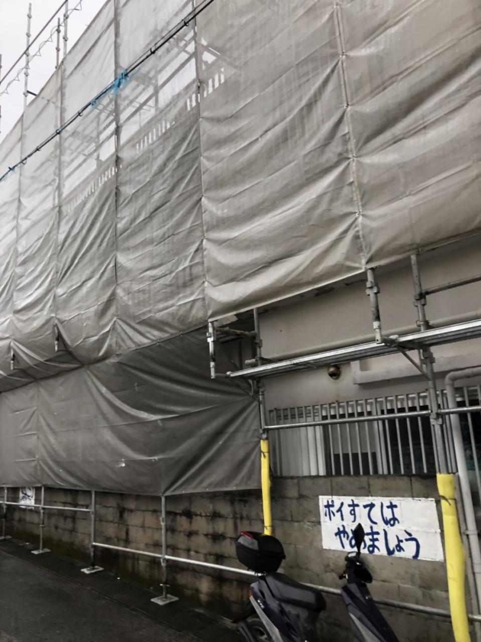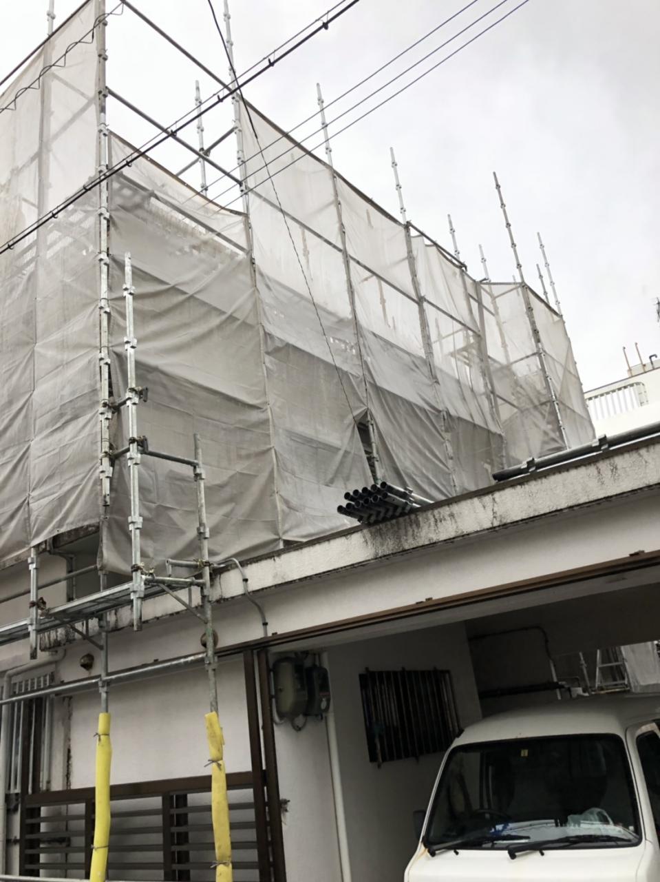 外壁塗装の足場を設置してきました。