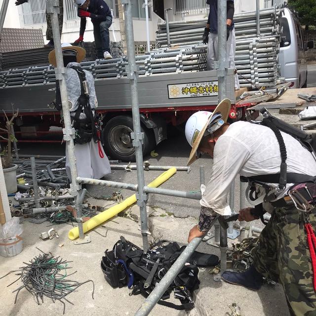 いよいよ工事が完了して、足場撤去作業始まりました。