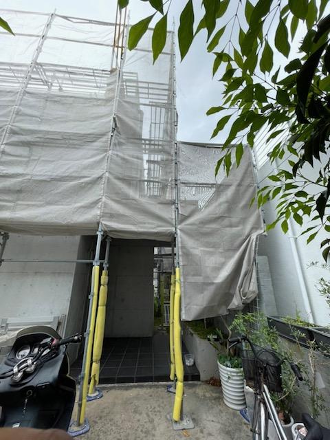 外壁塗装工事のため足場を設置してまいりました。