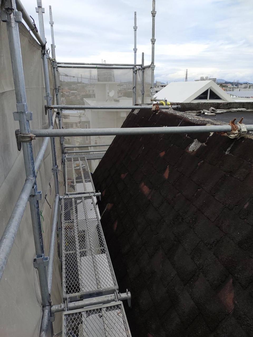 一旦瓦を剥いだりしての作業で、落下防止兼作業用足場となりました。