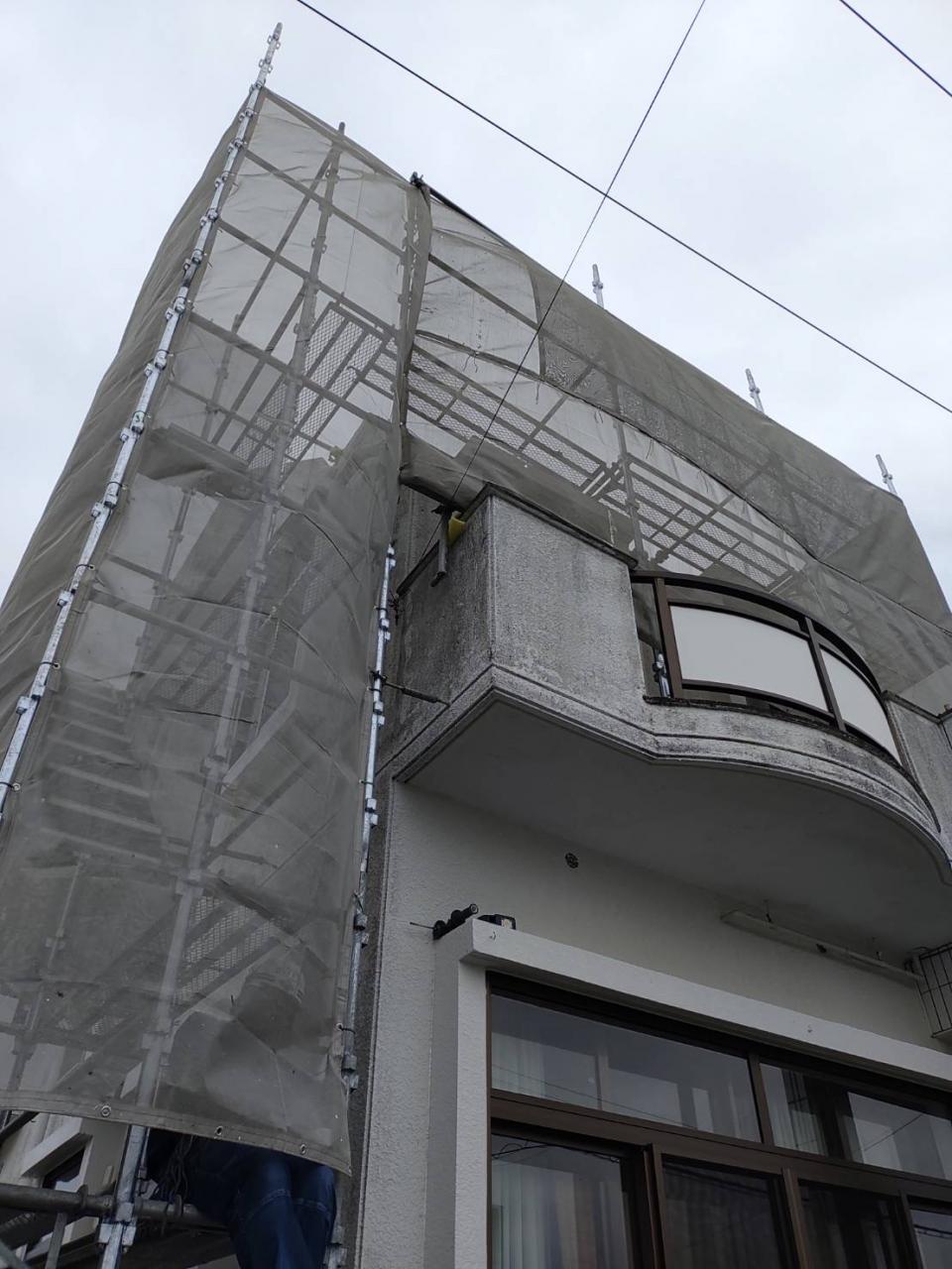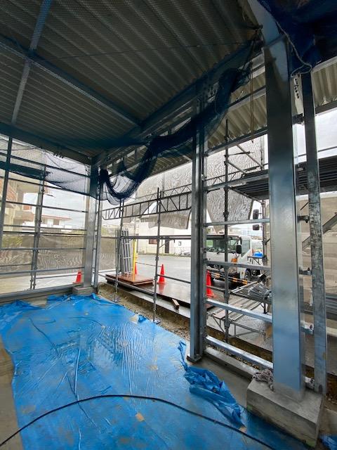 こちらは、塗装工事完了しシートを外し解体準備です。
