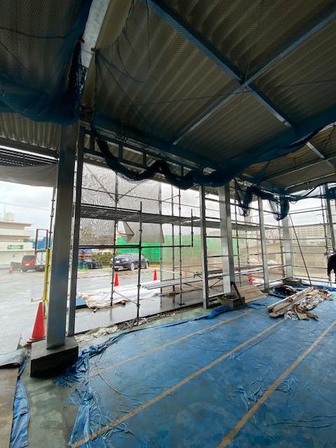 屋上防水工事の為足場を一部撤去してまいりました。