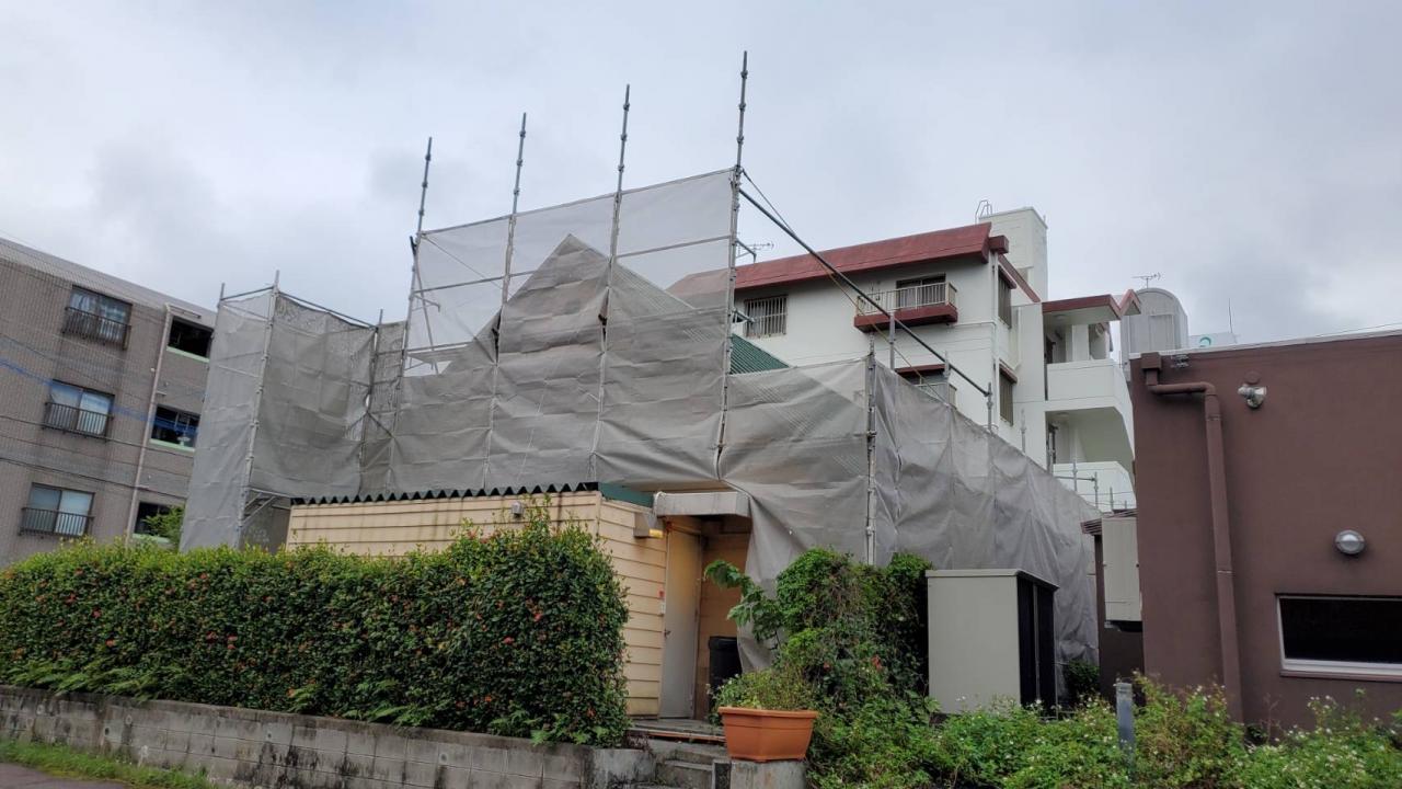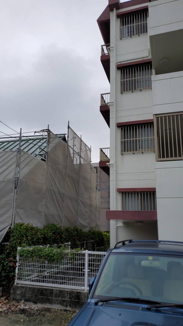 今回は、中城村にて足場の解体を行なってまいりました。