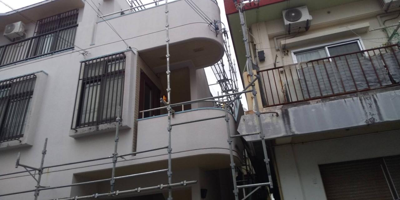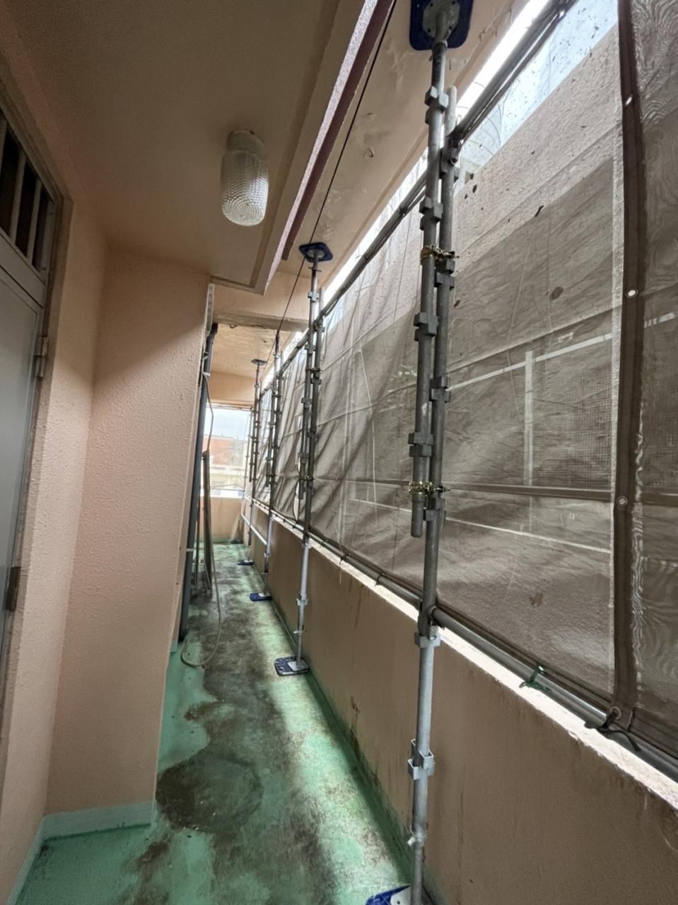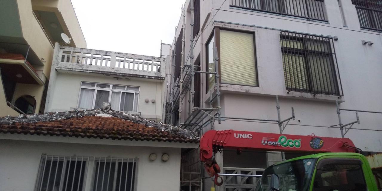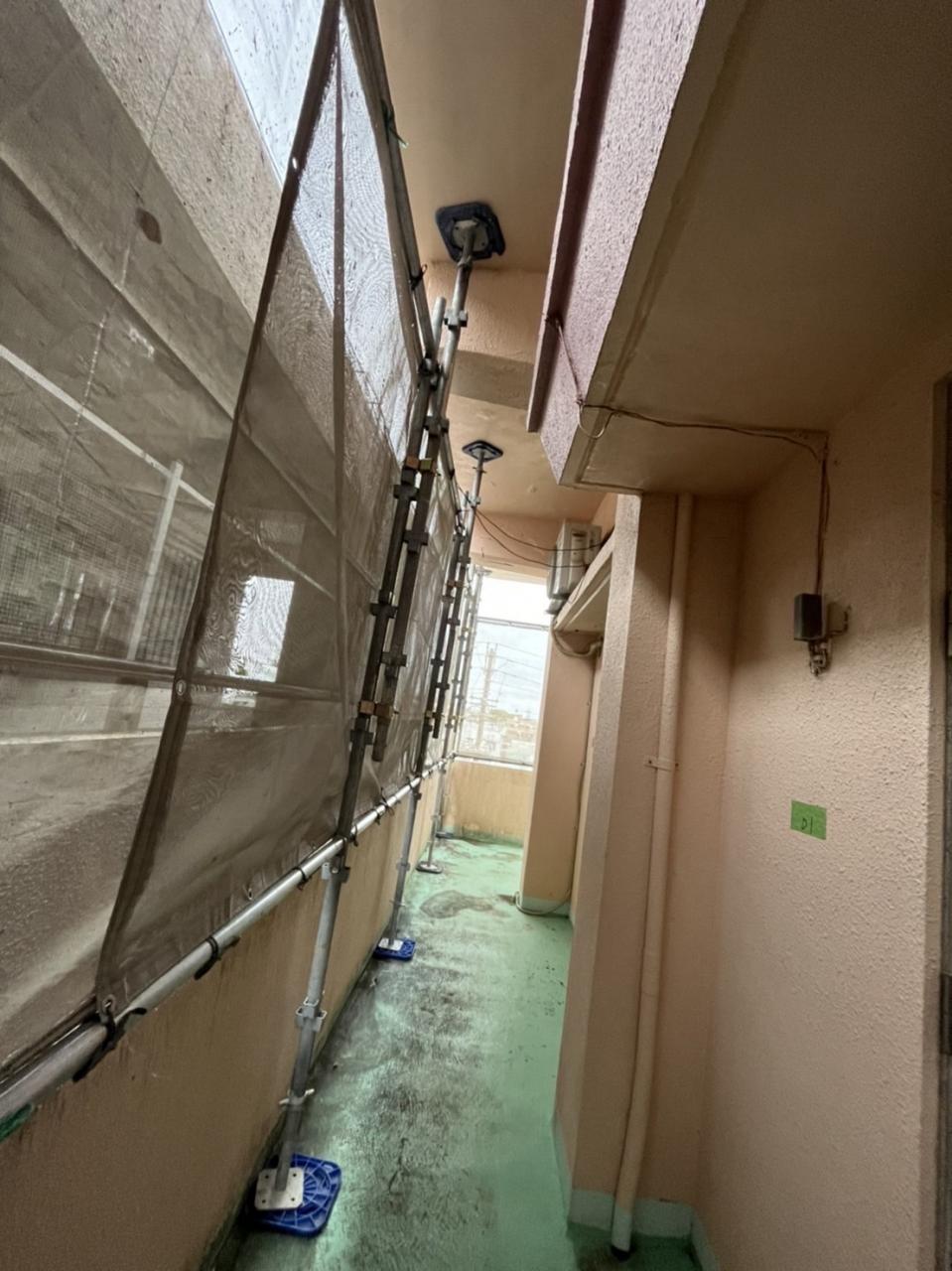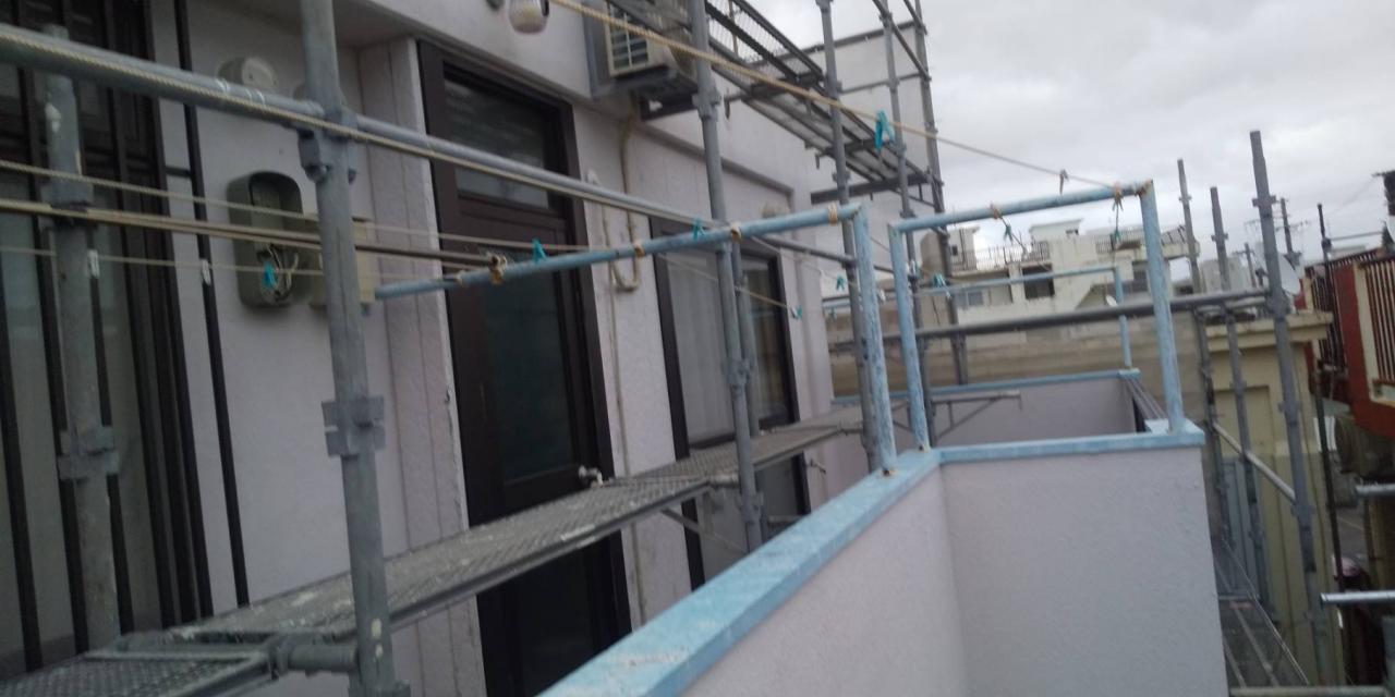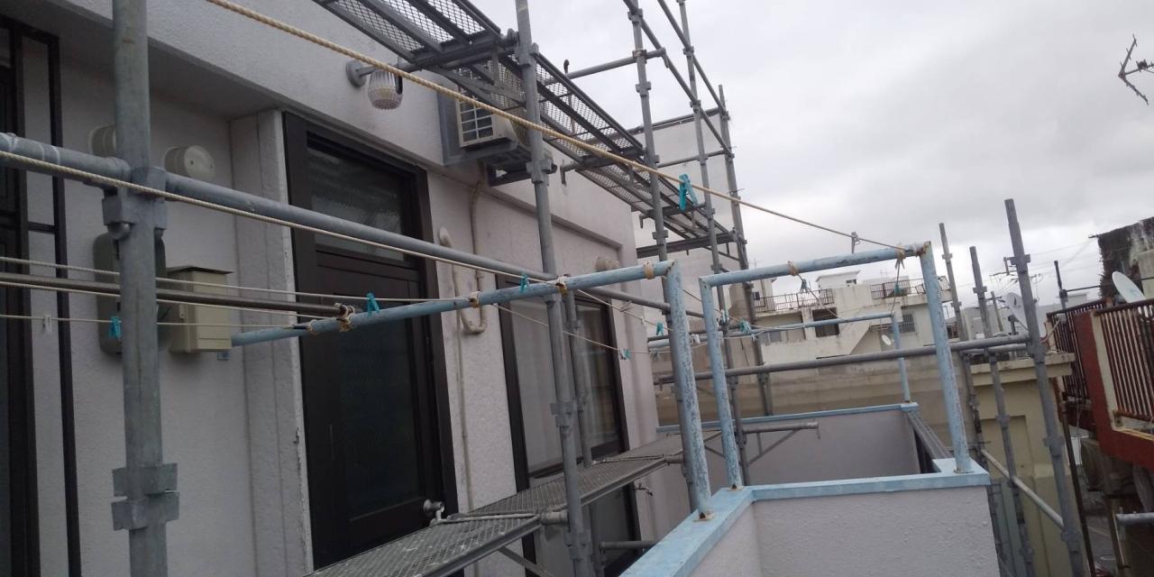 本日は、那覇市にて外壁塗装工事の為足場を設置して参りました。