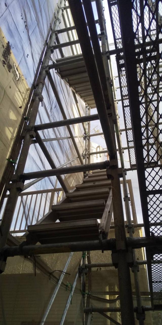 先日からの引き続き足場撤去作業を進めています。