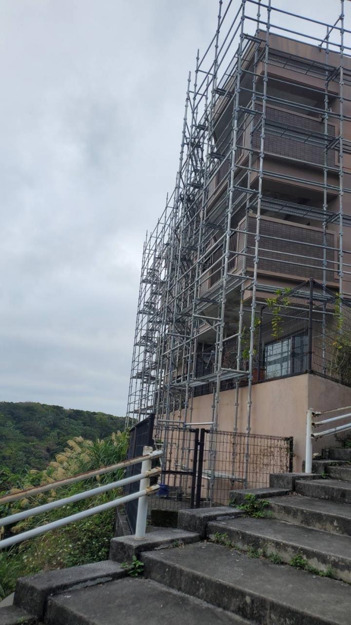 本日もう一班は、浦添市にて足場を設置してきました。