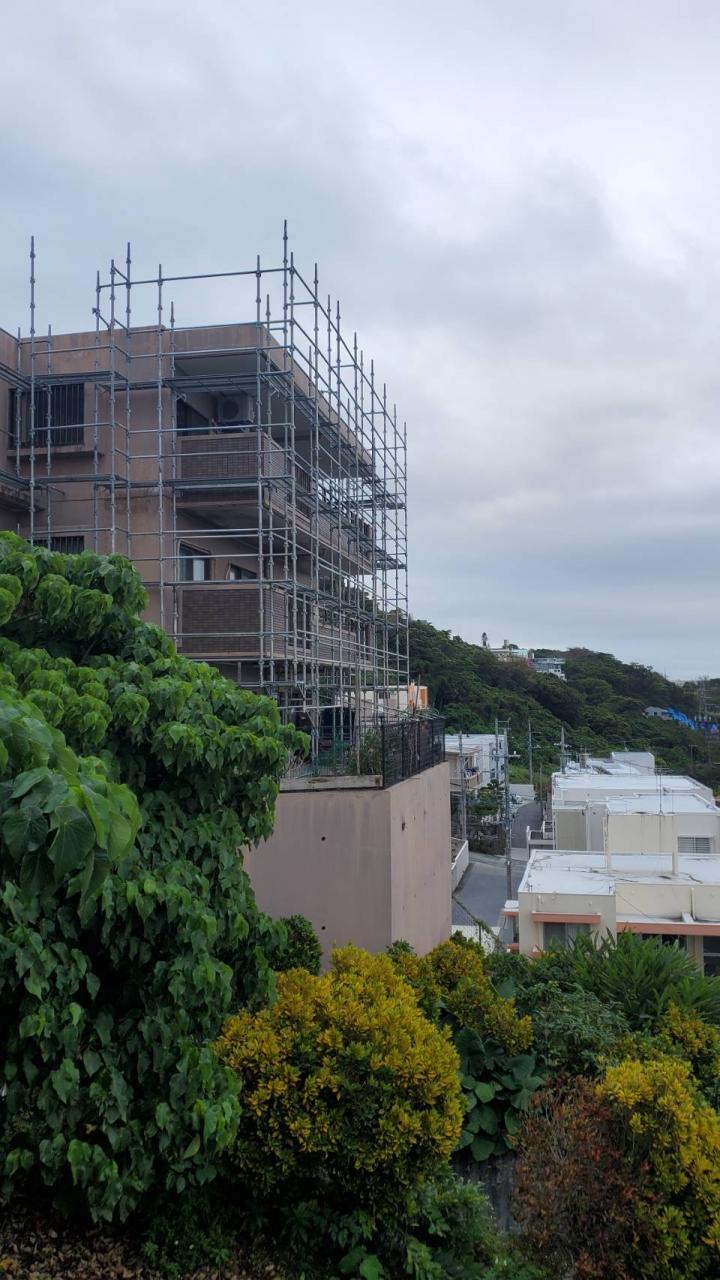 こちらのもう一班は、金武町にて足場を設置してまいりました。