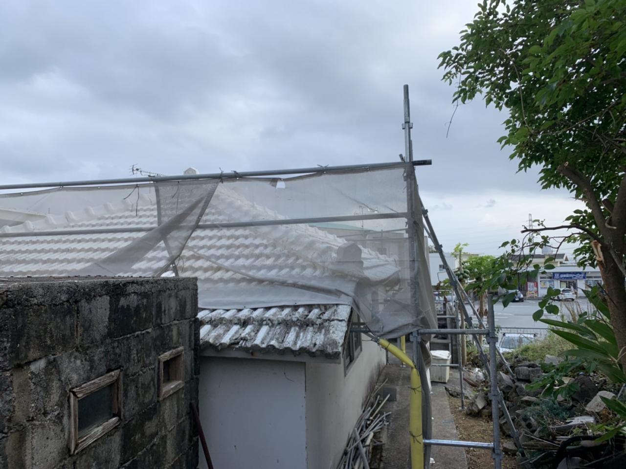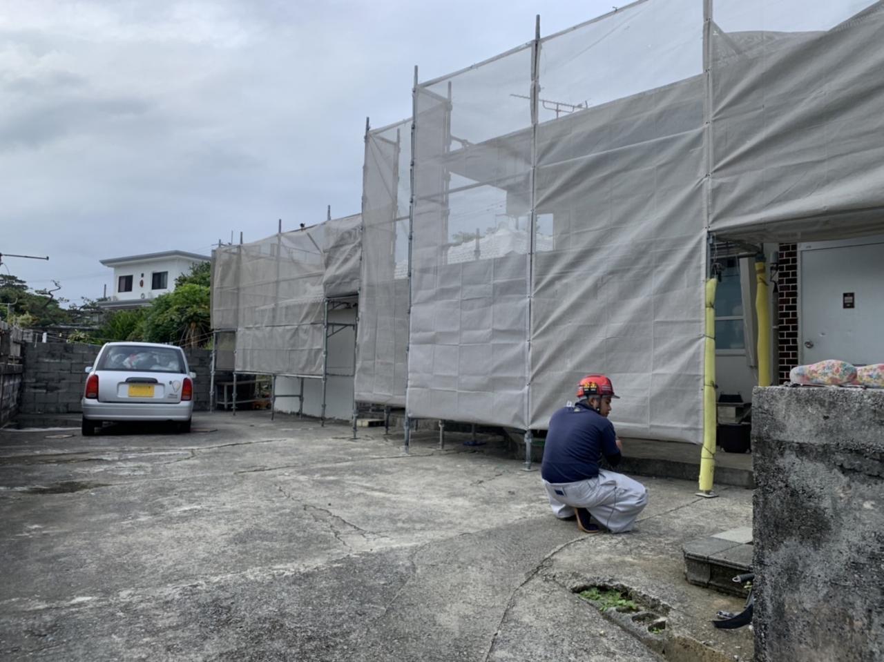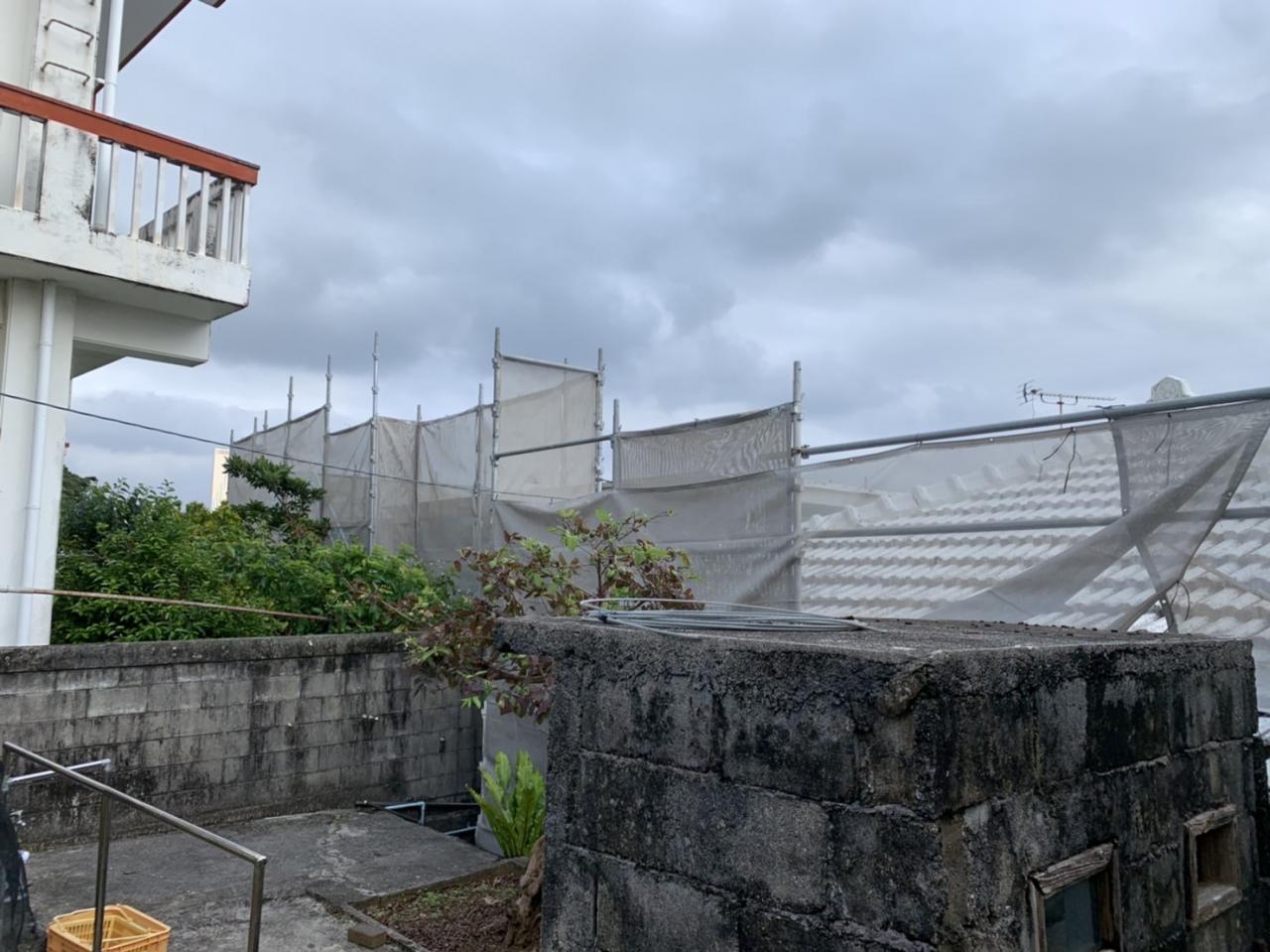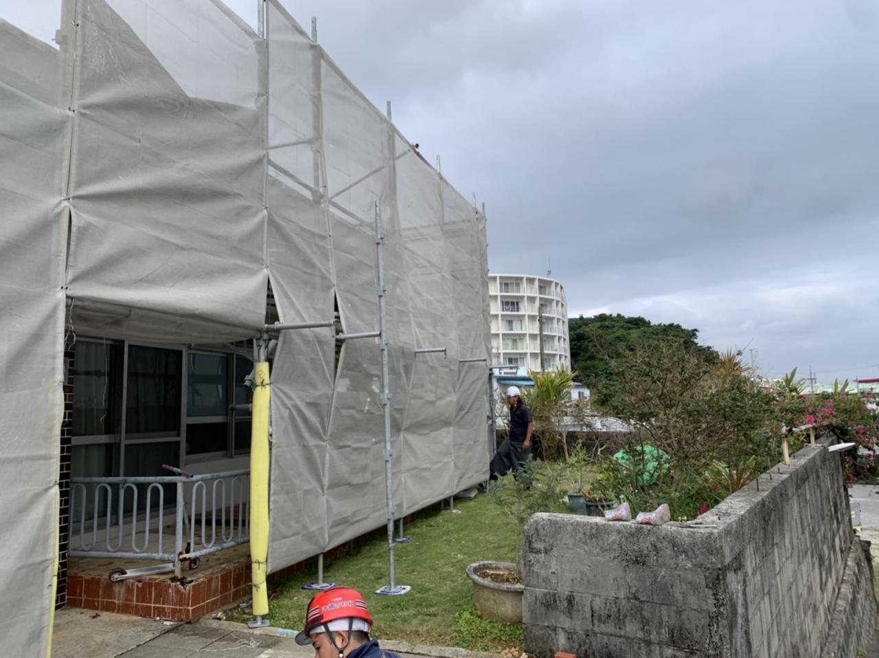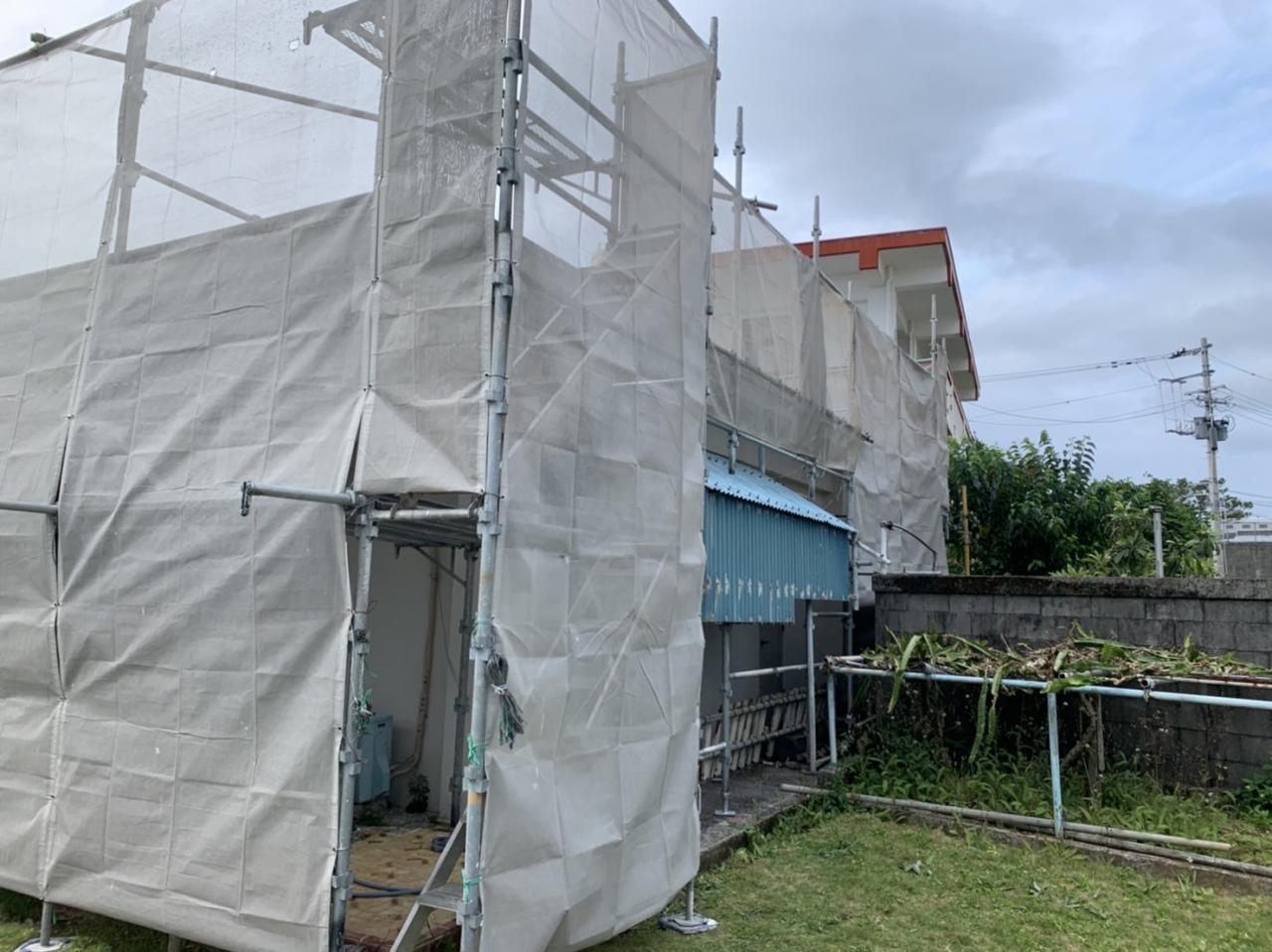こちらは、金武町で外壁塗装工事用足場を設置してまいりました。