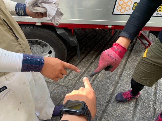 こちらは、歩道に関している近い面を先に撤去してきました。