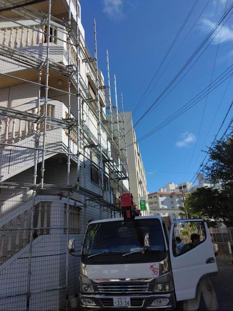 本日から那覇市で足場の組立作業入りました。